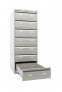 Картотека AFC 07 является сборно-разборной конструкцией. Предназначена для хранения документов формата А5. Картотека оборудована 7 выдвижными ящиками. Внутренние размеры ящика, мм (ВхШхГ)168х433х581 Каждый ящик выдерживает максимальную нагрузку 20 кг. Дополнительные опции- дополнительные компрессионные пластины. Окрашена картотека в серый полуматовый цвет Поставляется в разобранном виде