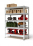 Среднегрузовой стеллаж Титан MС-Т предназначен для хранения грузов в складах, торговых и производственных помещениях. Стеллаж представляет собой сборно-разборную конструкцию. Для сборки стеллажа необходимо 4 стойки МС-Т 2500, 10 продольных балок МС-Т 151, 10 боковых балок МС-Т 75, 5 полок из фанеры толщиной 10 мм, 5 стяжек МС-Т 75. Стойки перфорированные, Г-образной формы, изготовлены из профилированной высококачественной стали. Ширина профиля стоек - 60х60 мм. Шаг перфорации стоек 50 мм. Балки крепятся к стойкам с помощью зацепов. Настилом для стеллажа Титан МС-Т служат листы высококачественной влагостойкой фанеры толщиной 10 мм. Нижняя полка секции должна находиться на расстоянии от пола не более 150 мм. Запрещается сборка нескольких секций стеллажа в единую линию. Конструкция стеллажа позволяет изменить положение полок без демонтажа всего стеллажа. Грузоподъемность на секцию стеллажа 2200 кг независимо от количества полок. Максимальная распределенная нагрузка на полку секции до 300 кг. Цвет - серый Ral 7035