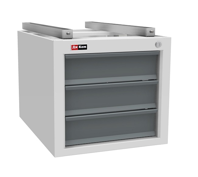 Стол СР-М-03 укомплектован подвесной тумбой CР-М-003 с 3 выдвижными ящиками. Размер ящика 100х305х459 мм (Внутренняя высота ящика меньше на 20 мм). Выдвижные ящики закрываются на центральный ключевой замок Euro Locks. Максимальная нагрузка на ящик 20 кг
