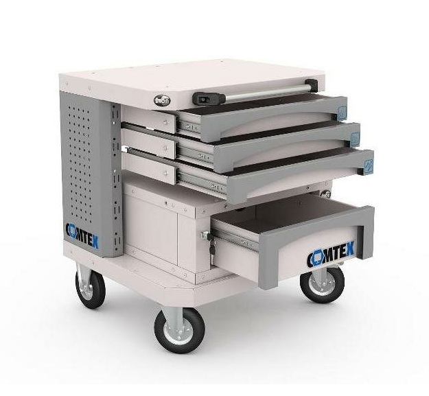 Дополнительно на тележку можно установить: выдвижную полку Comtex, выдвижной ящик Comtex, кронштейн для монитора, кронштейны для RACK модуля, цоколь для тумбы Comtex, лоток для тумбы/тележки Comtex, карман для документов А4 и другие аксессуары.