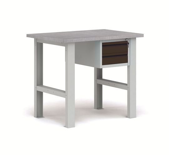 В комплект верстака ВП-Э входит: столешница СТ-1 из МДФ, покрытая оцинкованным листовым металлом, комплект К-1Э (две верстачные металлические опоры), одна подвесная тумба Т-ВП-Э с одним выдвижным ящиком. Размер тумбы (ВхШхГ) 280х380х630 мм