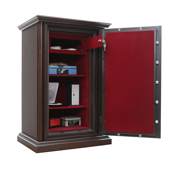 Valberg Гарант Евро 95 Т EL Д (дуб) предназначен для сохранности документов и ценностей при пожаре и взломе. Рекомендованная сумма хранения денег до 6,5 млн. руб. для физических лиц и до 2 млн. руб. для юридических лиц. Устойчивость к взлому по ГОСТ Р 50862-2017: класс 2 (ГОСТ Р). Огнестойкость: ГОСТ Р 57384-2017: класс 60Б (ГОСТ Р). При заливке двери и корпуса сейфа используется запатентованная система армирования огнестойкого бетона. Толщина защитного слоя двери - 33 мм, общая толщина двери - 105 мм. Толщина боковых стен -77 мм, задней стенки - 51 мм. В сейф установлена: 3х сторонняя ригельная система запирания; защита замка и ригелей от высверливания и выбивания; система блокировки ригельного механизма при выбивании замка; тепловой замок, усиленный огнестойким уплотнителем. Сейф Valberg Гарант Евро 95 Т EL Д (дуб) закрывается электронным кодовым замком PS610/E036 (под заказ возможно установить - ключевой замок KABA MAUER; биометрический кодовый замка PS610FD/E36FD). Предусмотрена возможность анкерного крепления к полу (анкерный болт в комплекте). Внешняя отделка выполнена из натурального дерева, внутренняя отделка из бархата. Покрытие ручек: матовый хром или золото. Цвет: корпус - №11-А, внутренняя отделка - С-1059. Возможны другие варианты окрашивания.
